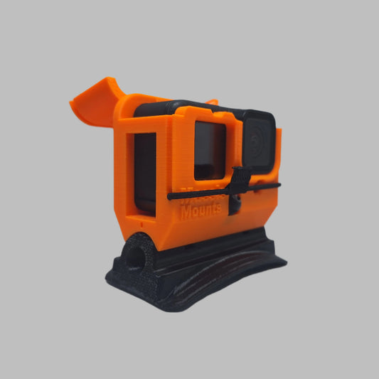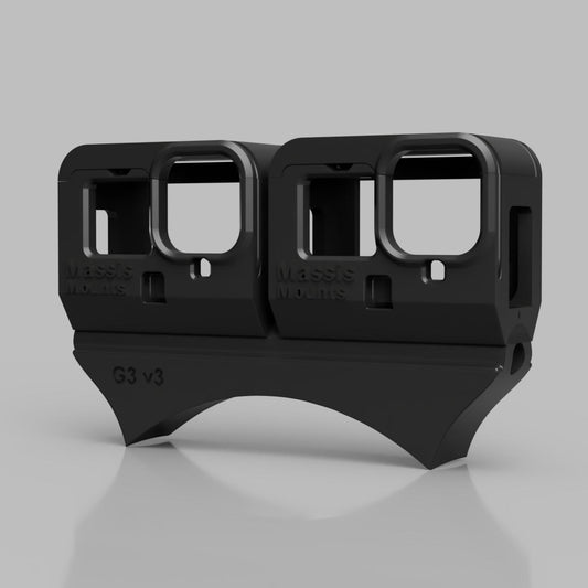 Sturdy snag resistant case for a single Gopro brand camera. Printed from UV- and temperature resistant material. Equipped with a flexible bumper to keep your camera securely in place while allowing full access and easy removal without having to adjust anything. No more fiddling with separate parts or losing your angle setting whenever you want to take out your camera! This case fits onto all available Massis Mounts camera bases and can be effortlessly adjusted to your angle of choice.